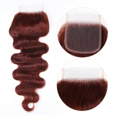 Julia Hair Reddish Brown Virgin Hair Body Wave 3 Bundles With Lace Closure 33B Auburn Color Human Hair Weave