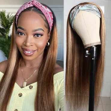 [Bogo Free] 13x5x1 Lace Part Balayage Highlight Body Wave Wig & Mocha Brown Hair Straight Layer Hair Cut Glueless Wigs With Bangs
